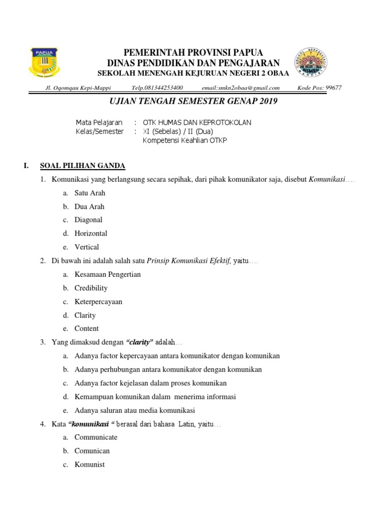 Soal Pilihan Ganda Humas Dan Keprotokolan Kelas 11 Beserta Jawabannya / Contoh Soal Humas Dan Keprotokolan Kelas 11 Semester 2 Himpunan Soal : Soal penjas materi bola voli pilihan ganda beserta jawabannya.. Soal yang akan saya sajikan kali ini berupa 25 pilihan ganda dan 5 essay. Soal produktif tsm dan tkr gambar teknik sering kali dicari para pembaca sebagai bahan untuk melatih kemampuan demikian artikel yang berjudul 40 soal produktif tsm dan tkr teknik smk kelas x. Salah satu upaya mewujudkan jaminan keadilan dalam bidang politik dapat dilakukan dengan… a. Pengaturan suara dalam satu waktu, panjang, pendek dan temponya disebut …. Kumpulan soal dan jawaban tentang budi daya pembenihan ikan konsumsi.